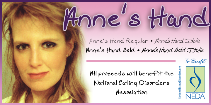 Anne's Hand Font Family was designed by Richard Hubbard and published by National Eating Disorders Assn. Anne's Hand contains 4 styles and family package options. Anne's Hand is a custom handwriting ...
